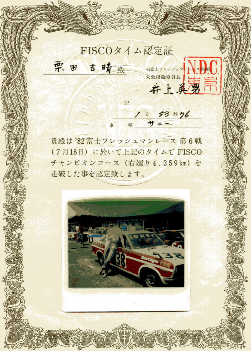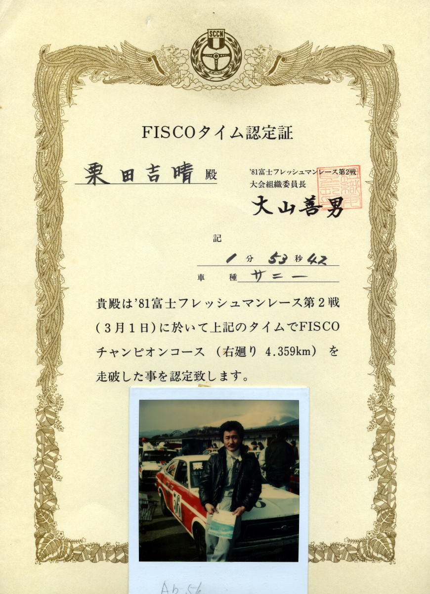 ★当時は予選の通過タイムを記載し写真を掲載した物を頂きました。
